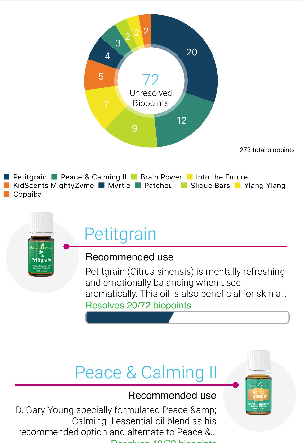 So as you can see, they now break your recommendations down into three categories: Emotional, Environmental, and Physical. I will say that I do like this as it takes some of the confusion out of the number game. The bio points seemed to scare people a little. What I miss is the breakdown of how much each recommendation would support your issues. I do like that they now seem to give a little more information on the actual products that are recommended. So that’s nice.